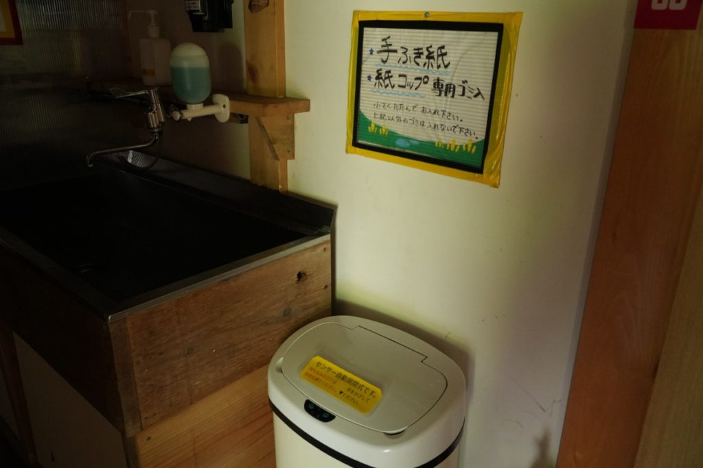 双六小屋でもそうでしたが、黒部五郎小屋でもペーパータオルがあってありがたいです。ゴミ箱は手をかざすと自動で開きます。