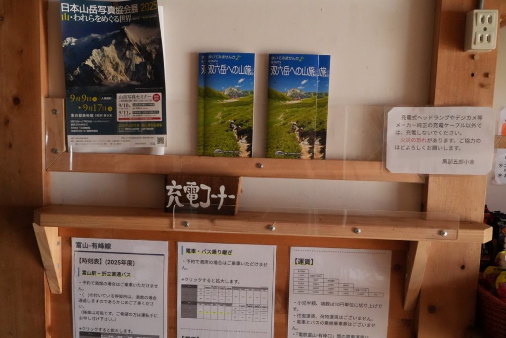 充電が無料だったのが嬉しかったです。小屋の電気は夕方にならないとつきませんが、その後消灯まで、充電は自由にしてOKです。