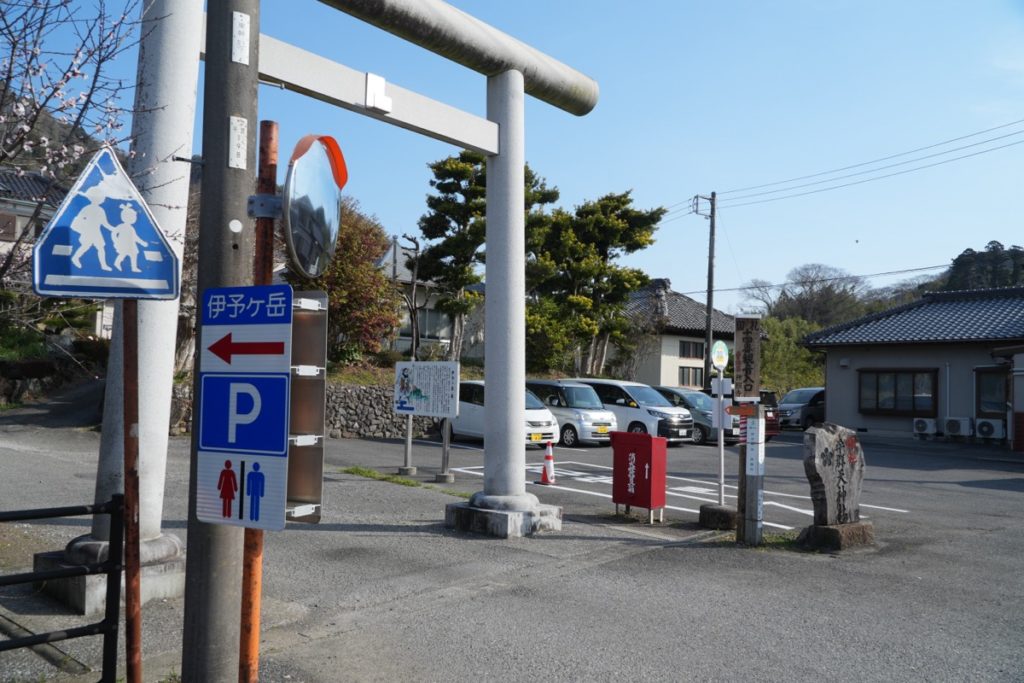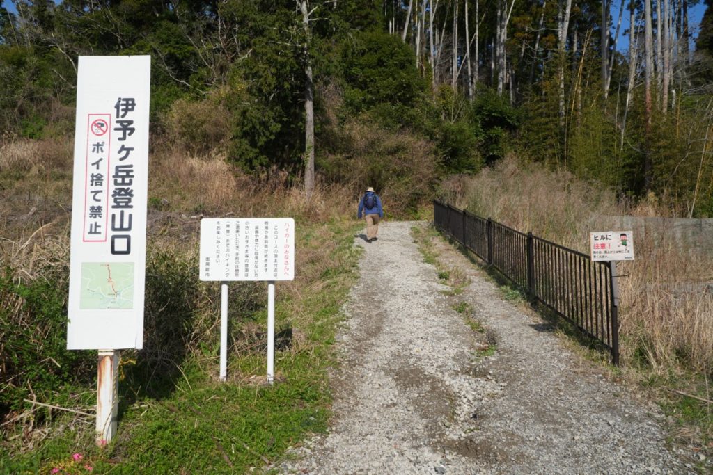 看板に山名の由来が書いてありました。昔、この地を治めていた人が伊予ゆかりの人で、伊予の大嶽=石鎚山から、名前を取ったようです。