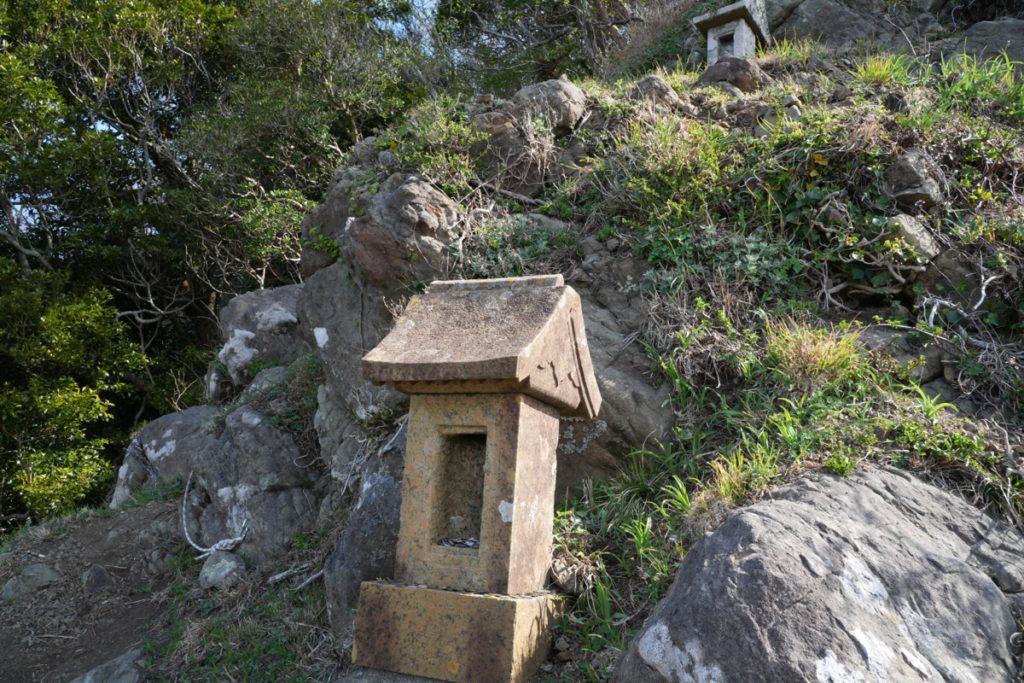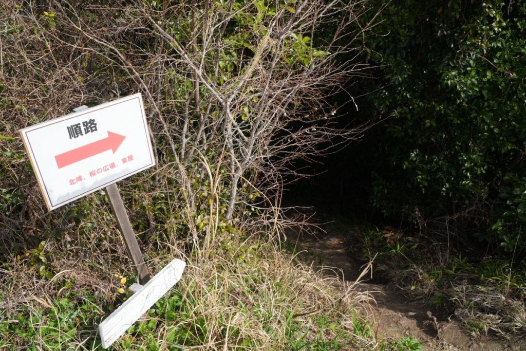 北峰付近に、祠という看板がありました。どうやらここから降ったところに祠があるみたい。
