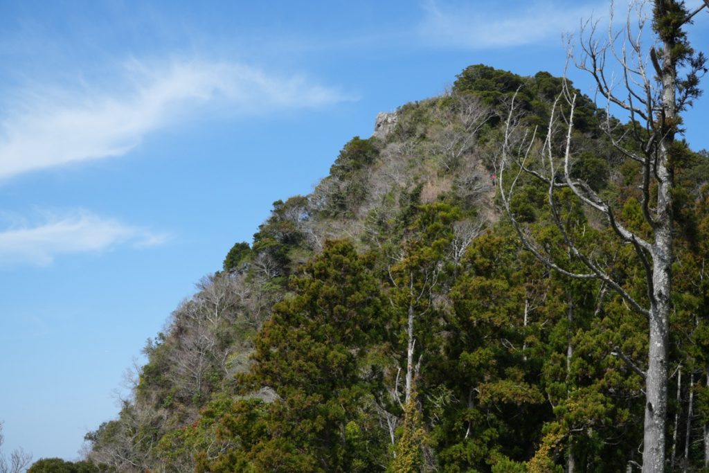 東屋からは山頂がよく見えました。山頂直下の鎖場を登っている人も見えて、思っていたより急なことに驚き。