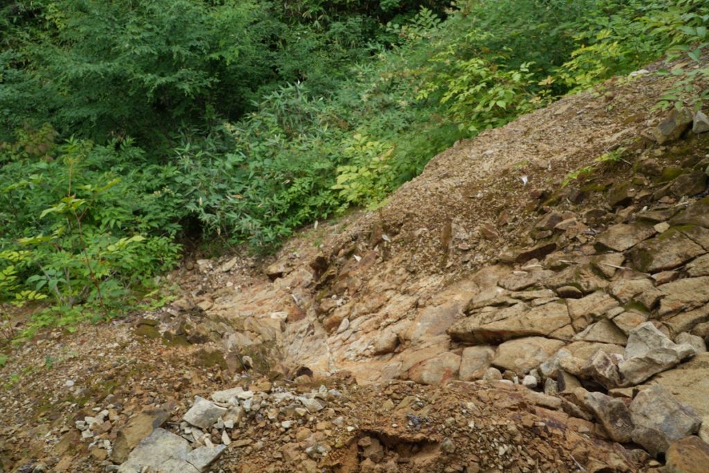 アラレちゃんを過ぎたあたりに、1箇所だけ危険箇所がありました。細いトラバースのすぐ下は崩落していて、ここは絶対に踏み外せません。