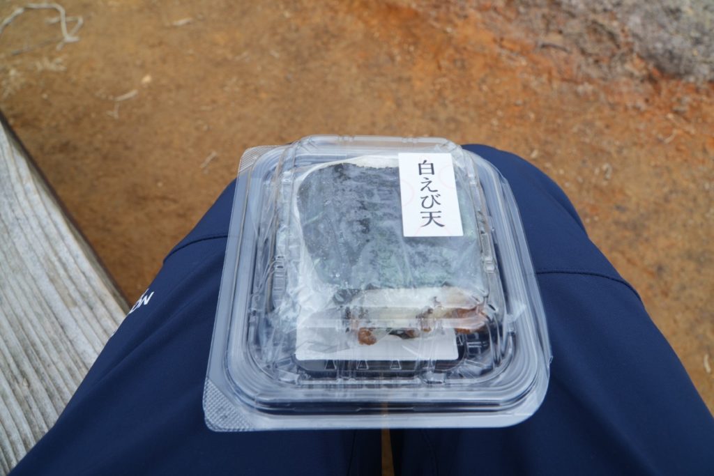 富山駅構内で買った、白えび天のおにぎり。すごくおいしかった!