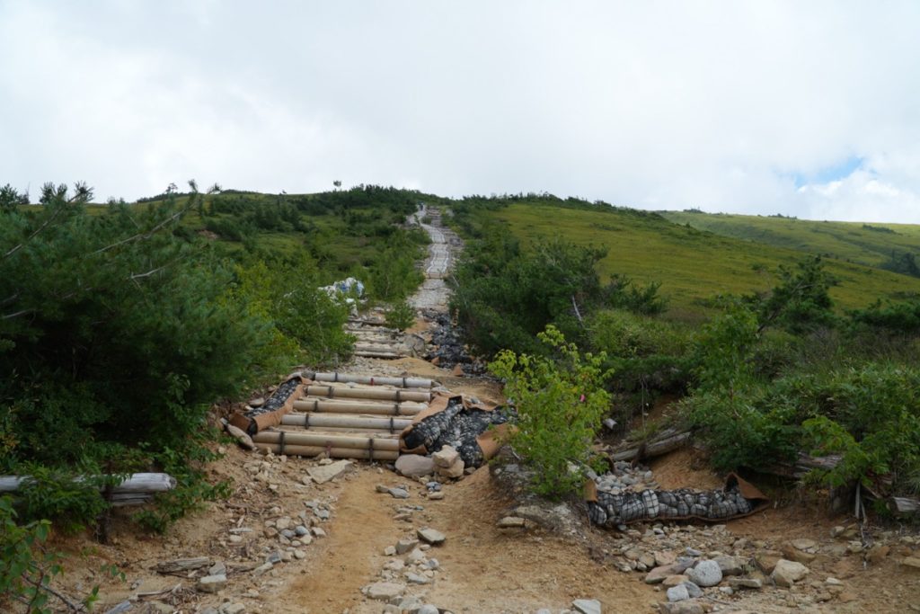 ここも木道なのですが、崩落地へ向かって傾いている・・・こんな所で滑るのは絶対に嫌なので、緊張しました。