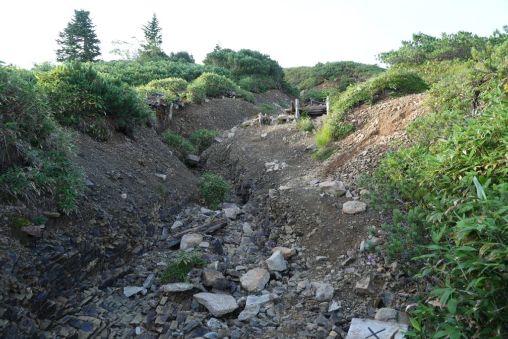 折立からの道はとても歩きやすいですが、少し前の大雨の影響なのか、ところどころ崩れていました。