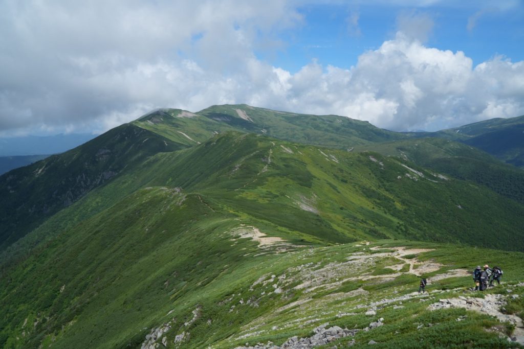稜線コースは推奨されておらず、慣れてない場合はカールコースを通るのが安全かも。山頂から見ても、稜線コースはやや荒れている印象でした。