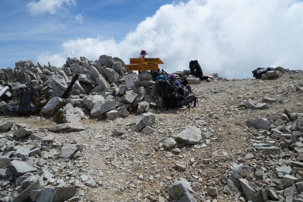 10:15、黒部五郎ノ肩に到着!ほとんどの人はここにザックをデポして山頂へ向かいます。