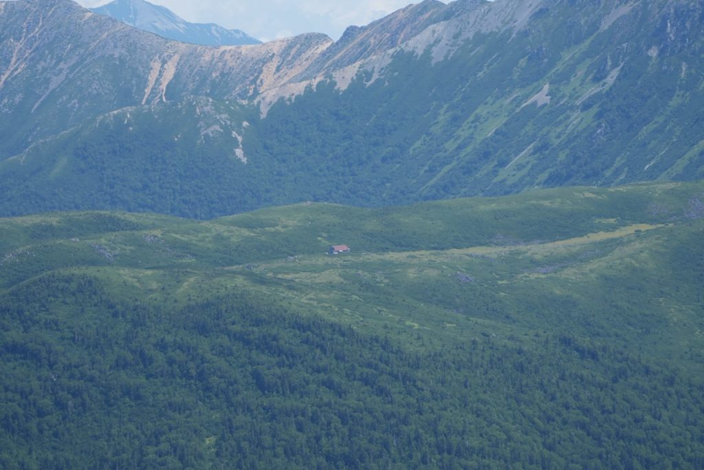 黒部五郎小屋はカール内に建っているイメージでした。でも勘違いで、樹林帯を抜けたところにありました。