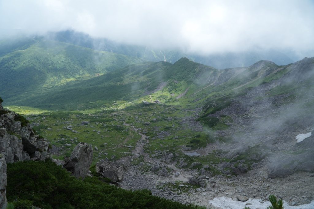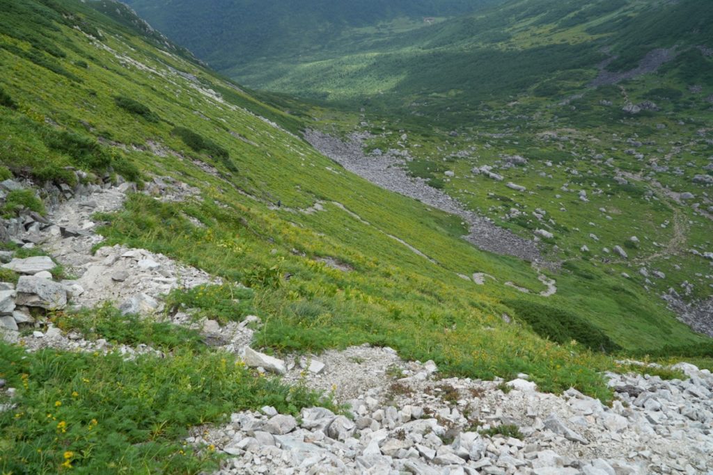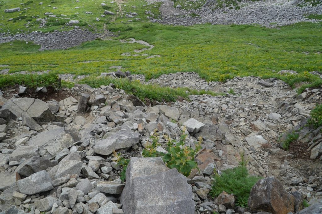黒部五郎岳からの下山は、半分はカール、半分は樹林帯、という感じでした。