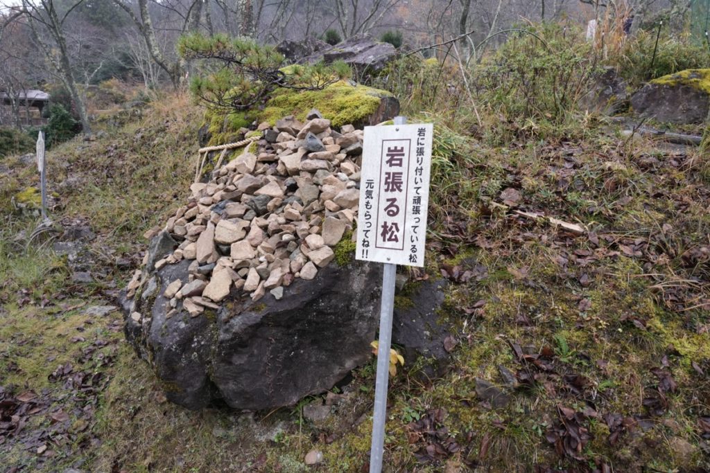 登山道には、名所がいくつかあって飽きないです。個人的に気に入ったのはこれ。こんな岩に着地してしまったのに頑張ってる・・・。
